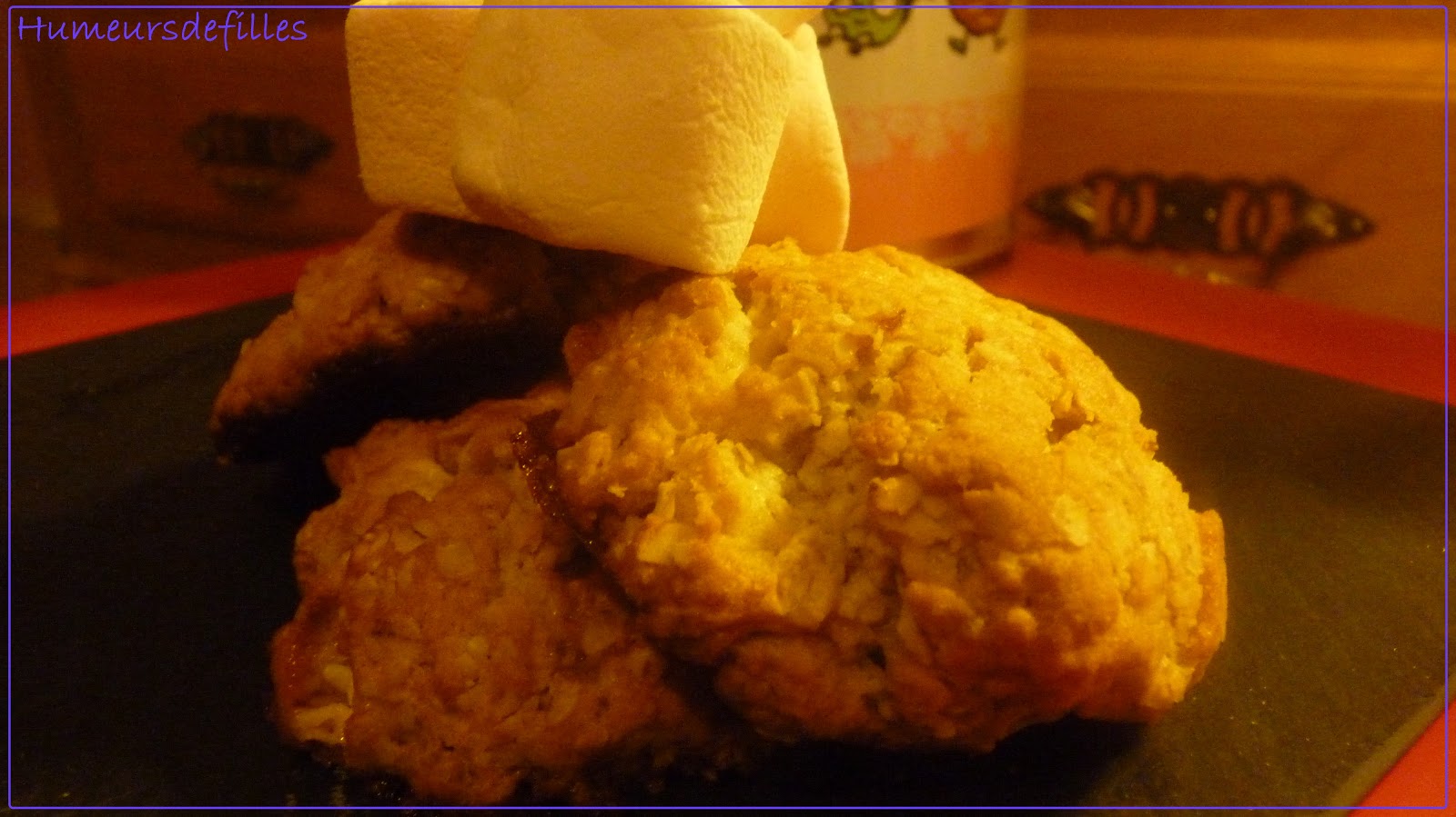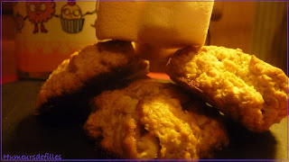 Faire des petites boules à la main, les déposer sur votre plaque de cuisson et les écraser à la main. Enfourner environ 12mns (même s'ils sont encore un peu mous, il faut les sortir, ils durciront en refroidissant).